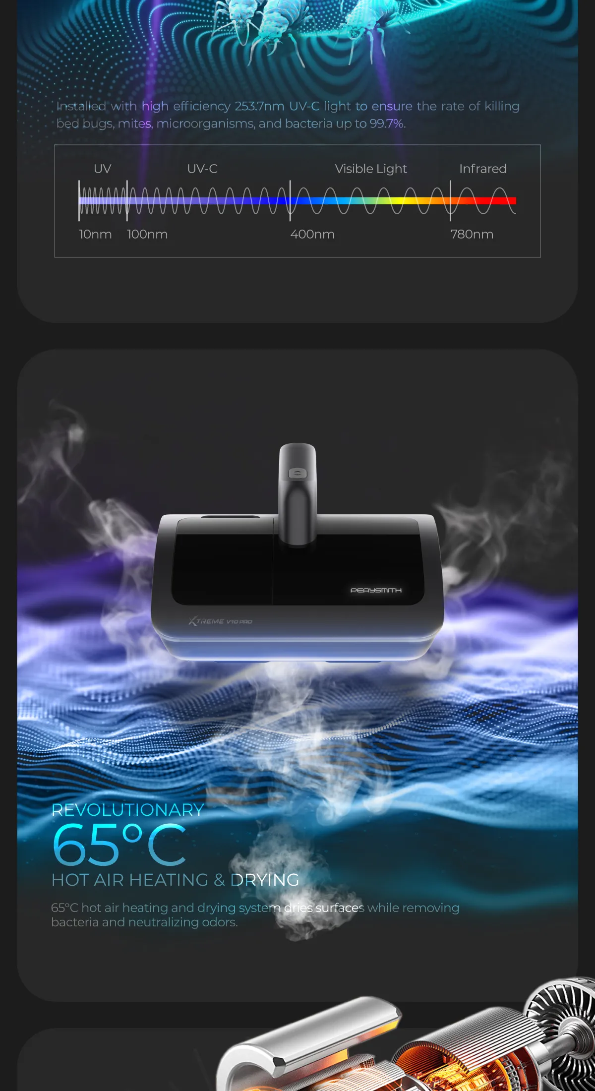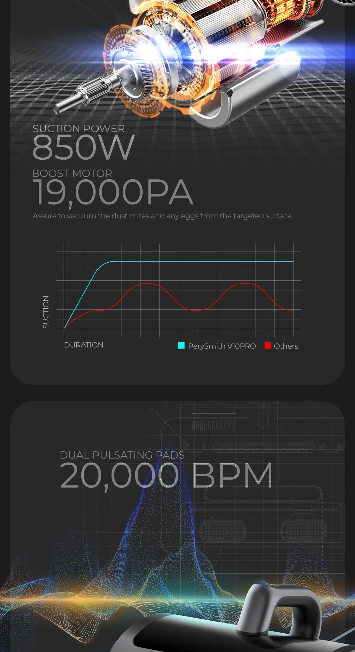 PerySmith V10PRO Dust Mite VacuumCleaner For Bed and Sofa with UV Sterilizer Anti-Mite bed vacuum