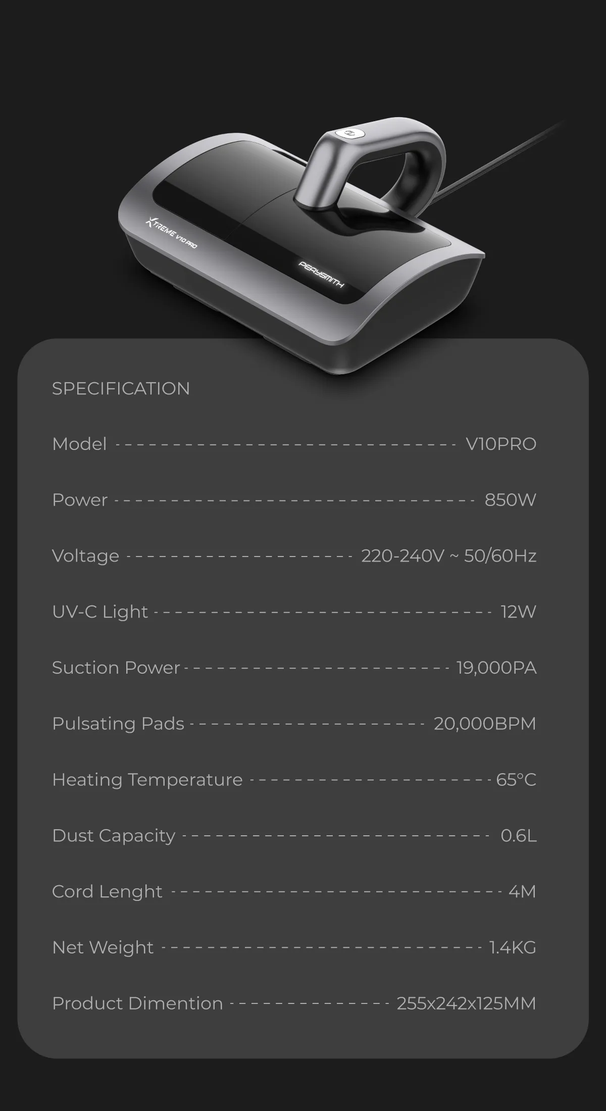PerySmith V10 Pro Dust Mite Vacuum Cleaner